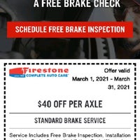 How much is brake service at Firestone. How much is a brake job at Jiffy Lube. Firestone offers a free Brake Check and computerized analysis.